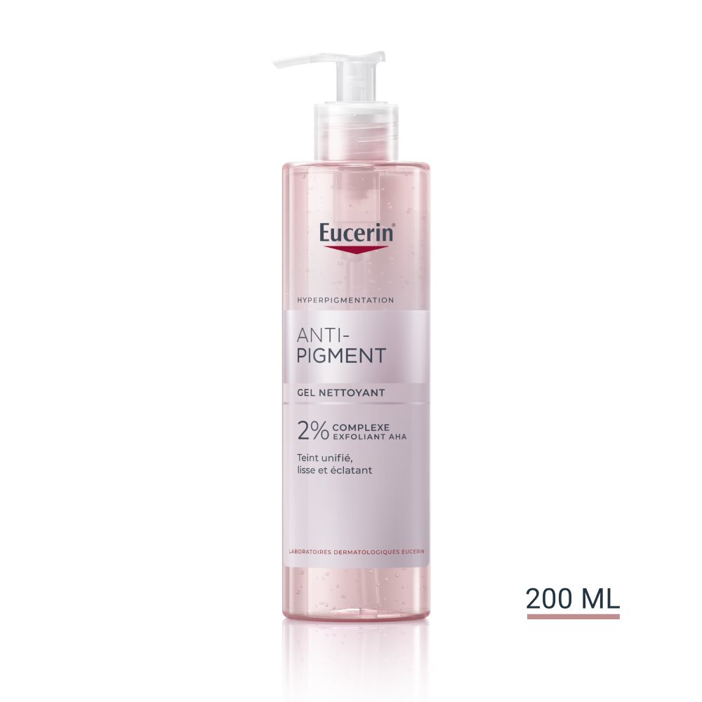 Une routine Anti-Pigment quotidienne complète. Voici le Gel Nettoyant Anti-Pigment Eucerin®, une étape essentielle de votre routine de soins de la peau pour une absorption optimale de votre soin Anti-Pigment au Thiamidol®. Une exfoliation aux AHA, préparant la peau à l’action du Thiamidol®** pour réduire efficacement les taches brunes dès seulement une semaine. Avec un puissant complexe d’AHA à 2 %, ce gel nettoyant améliore non seulement l'éclat de la peau instantanément, mais cible et aide également à corriger le teint irrégulier. Contenant aussi du gluco-glycérol, il aide à maintenir l'équilibre hydrique naturel de la peau, laissant votre peau instantanément douce. Les bienfaits de la formule : • Agit en douceur pour un usage quotidien • Donne à la peau une sensation hydratée • Améliore la luminosité de la peau. Des études dermatologiques cliniques prouvent : Très bonnes efficacité et tolérance cutanée, même sur les peaux sensibles. Convient à toutes les carnations.