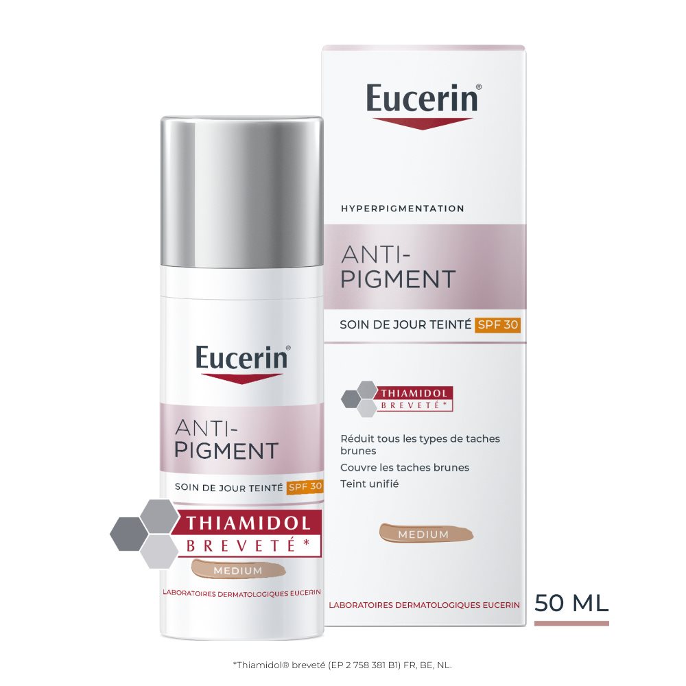 Oui. Le Soin de Jour Teinté Anti-Pigment SPF 30 Medium peut être utilisé pour de nombreux types d’hyperpigmentation, notamment en cas de taches de vieillesse (aussi appelées taches solaires). De plus, avec son SPF 30, il protège la peau du soleil ce qui aide à réduire davantage le risque de formation de taches pigmentaires induites par le soleil. Pour obtenir des résultats optimaux, nous recommandons de l'utiliser en complément à d’autres produits de la gamme Eucerin Anti-Pigment.