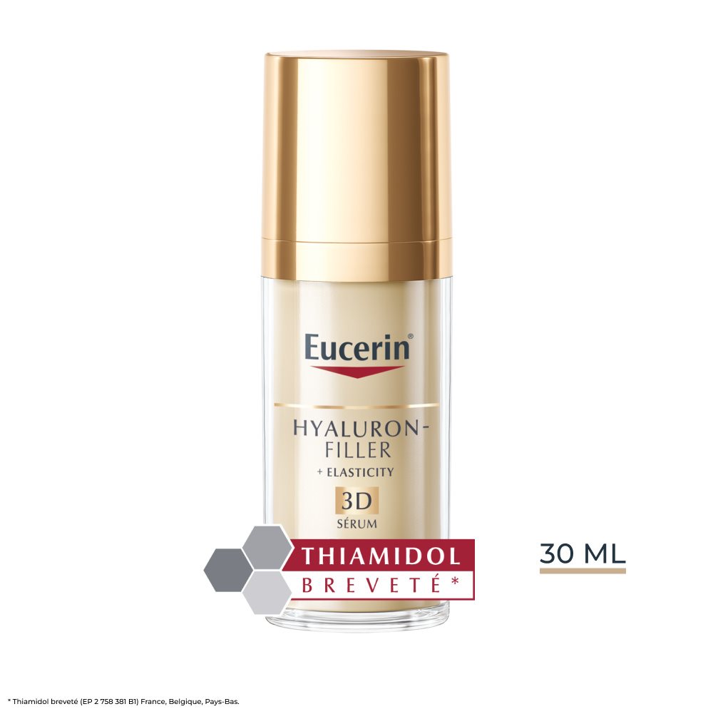 Le sérum contient à la fois de l'Acide Hyaluronique de haut et bas poids moléculaire qui améliore l'hydratation de la peau, mais il n'a pas été formulé pour remplacer un soin hydratant de jour ou de nuit ou une crème spécialisée pour le contour des yeux. Pour des résultats optimaux, nous vous recommandons de l'utiliser en association avec d'autres produits de la gamme Eucerin Hyaluron-Filler + Elasticity.