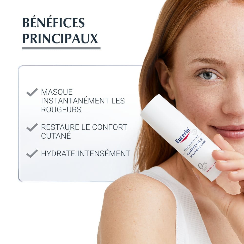 Le Soin Apaisant Eucerin AntiROUGEURS a été spécialement développé pour les peaux qui ont une tendance aux rougeurs et à l'hypersensibilité cutanée.