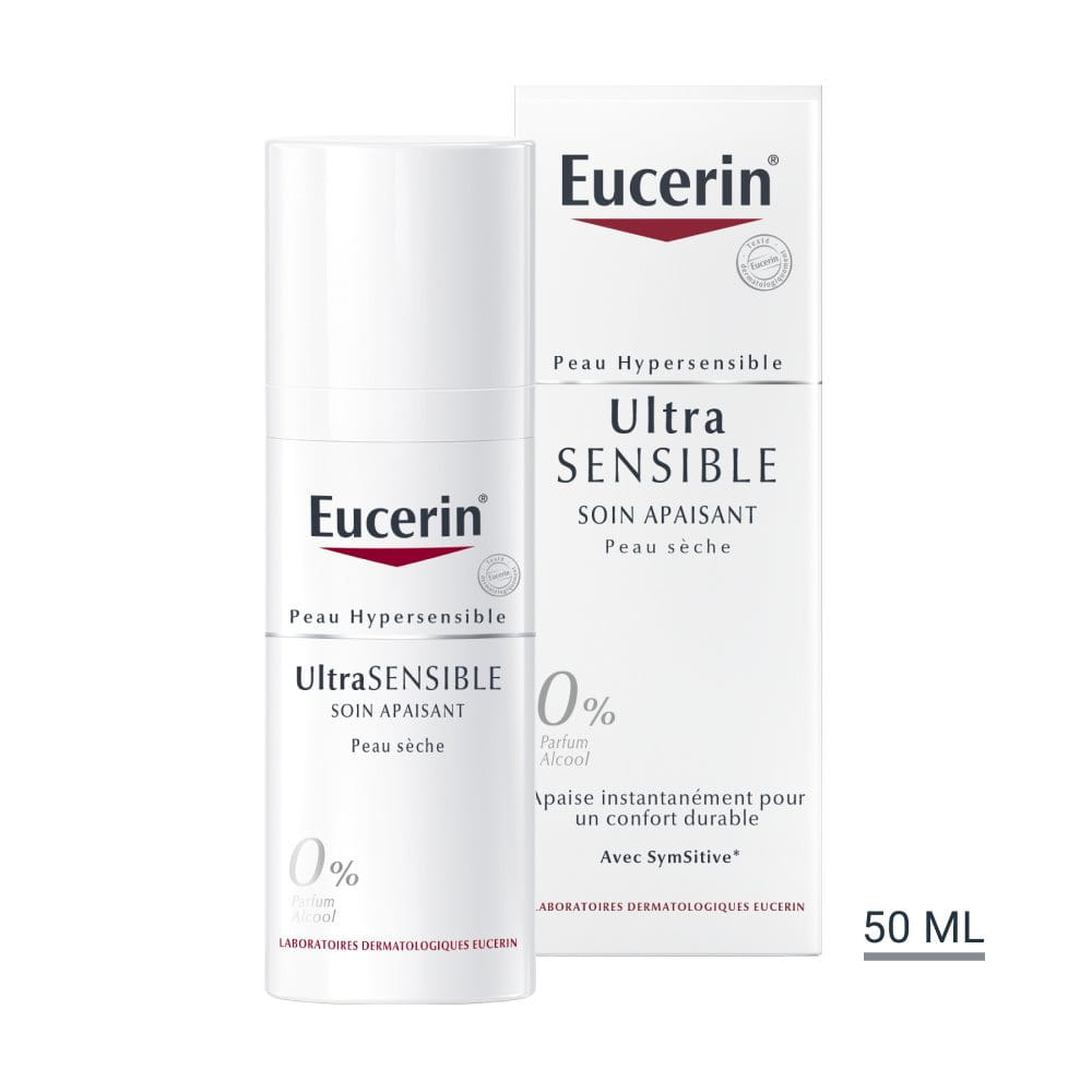 Le Soin Apaisant Peau Sèche Eucerin UltraSENSIBLE apaise non seulement la peau hypersensible et pénètre de manière instantanée, mais avec le temps, il aide à protéger la barrière de la peau et ainsi à augmenter le seuil de tolérance cutané.
