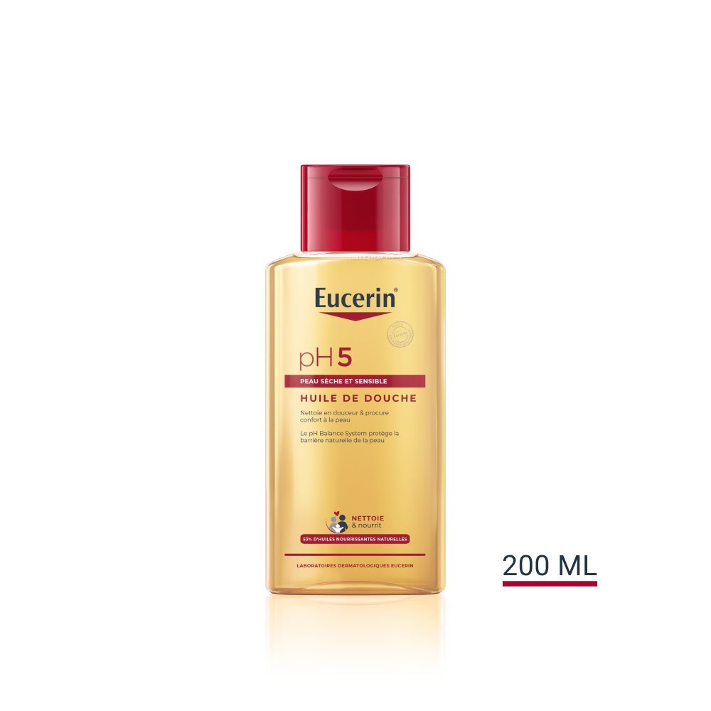 La peau sensible a besoin d'être nettoyée en douceur pour préserver sa capacité de résistance aux agressions extérieures quotidiennes. Procurez confort à votre peau et protégez-la avec l'Huile de Douche pH5 d'Eucerin. Offrez une nouvelle sensation de bien-être à votre peau. L'Huile de Douche pH5, avec des huiles naturelles et du Dexpanthénol, nettoie en douceur la peau sensible. Elle respecte le microbiome cutané en n'influençant pas son équilibre naturel. La peau est nettoyée en douceur et son niveau de pH est respecté. La peau est douce et souple au toucher, elle est protégée contre le dessèchement et retrouve son confort.