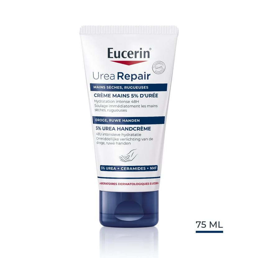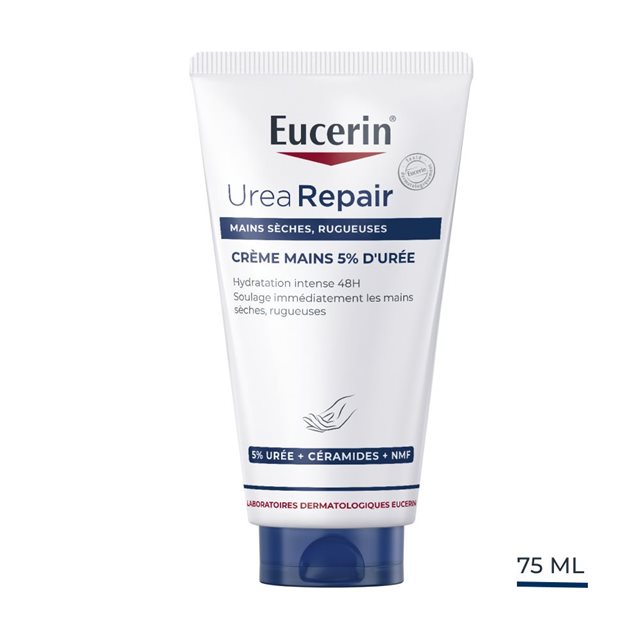 Notre crème spécialement formulée pour les mains est rapidement absorbée, n’est pas grasse et contient la combinaison d’ingrédients nécessaire pour aider à protéger votre peau de la perte insensible en eau. La Crème Mains 5 % Urée UreaRepair PLUS d'Eucerin procure un apaisement immédiat et durable (jusqu’à 48 heures) de la peau sèche. Elle aide à apaiser les rougeurs et adoucit les peaux rugueuses, laissant vos mains douces et hydratées, malgré les lavages fréquents.