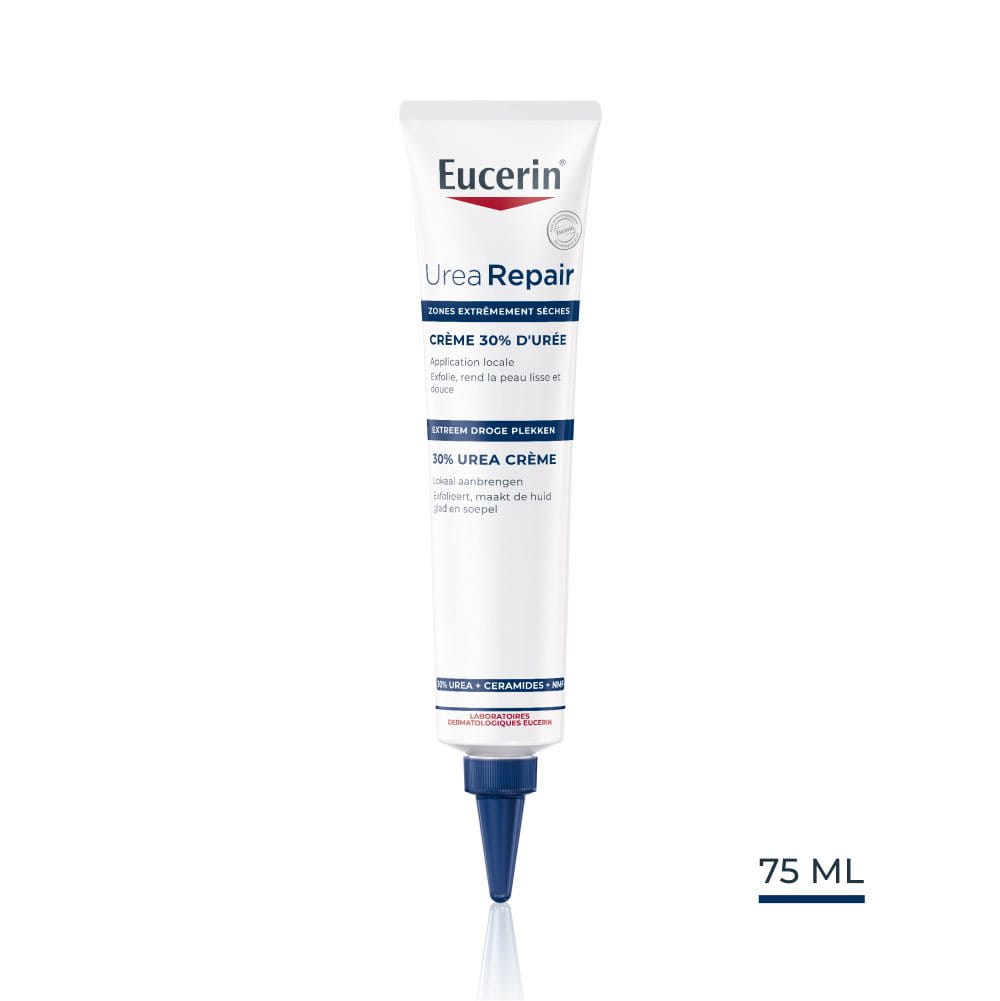 La Crème 30% d'Urée UreaRepair PLUS d'Eucerin procure aux peaux extrêmement sèches le soin intense dont elles ont besoin. La formule contient une combinaison unique de :